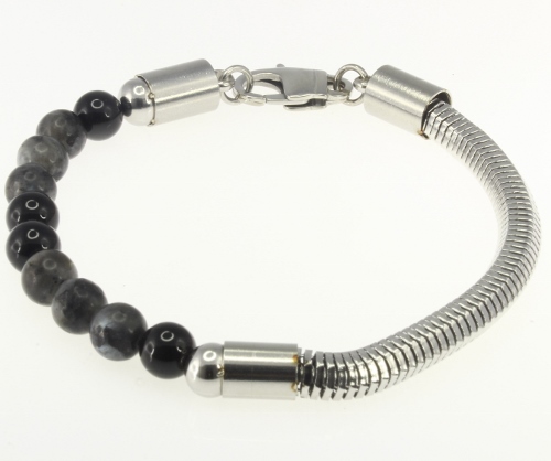 STAINLESS STEEL ELASTIC BRACELET WITH BLACK LAVA STONE WITH CHAIN