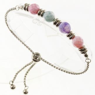 STAINLESS STEEL ADJUSTABLE BRACELET WITH STEEL & NATURAL STONE
