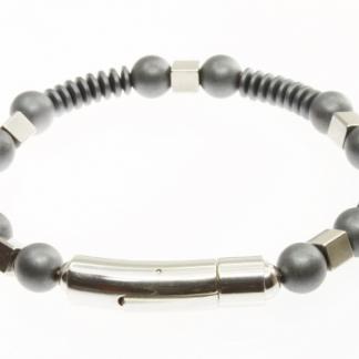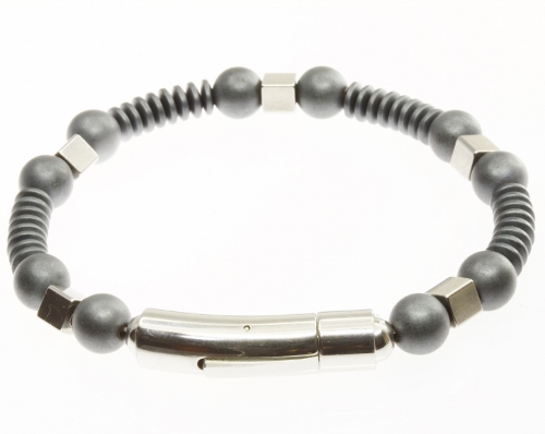 STAINLESS STEEL BRACELET WITH STEEL & HEMATITE BEADS