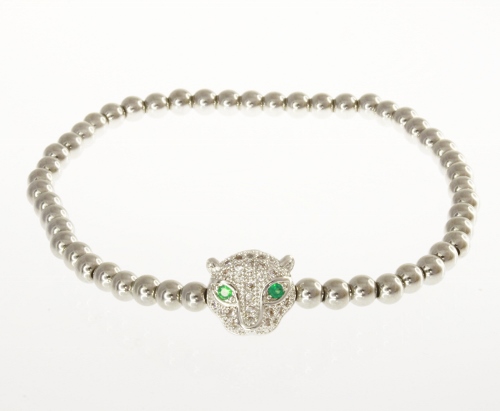 STAINLESS STEEL BRACELET WITH CENTER PANTHER WITH WHITE CRYSTALS ALL IN S/S COLOR