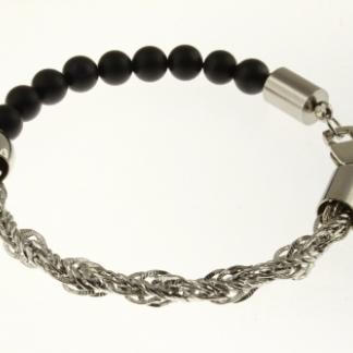 STAINLESS STEEL ONIX BEADS & CHAIN BRACELET ALL IN S/S COLOR