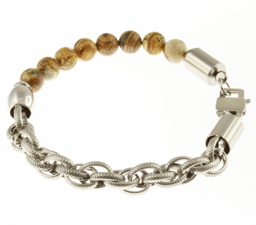 STAINLESS STEEL BROWN STONES BEADS & CHAIN BRACELET ALL IN S/S COLOR