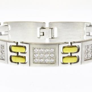 STAINLESS STEEL MEN BRACELET WITH CNC SETTING ON THE LINKS IN S/S AND IPG COLOR