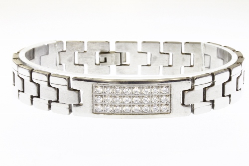 STAINLESS STEEL MEN BRACELET WITH CNC SETTING ON THE LINKS IN S/S AND IPG COLOR