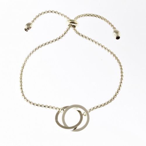 STAINLESS STEEL BRACELET WITH DOUBLE RING CENTER ADAPTABLE SIZE ENDING IN STEEL BEADS