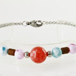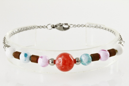 WOOD AND NATURAL STONE BEADS BRACELET ALL IN S/S COLOR