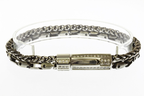 STAINLESS STEEL DOUBLE CHAIN MEN BRACELET LOCK WITH CNC SETTING ALL IN S/S COLOR