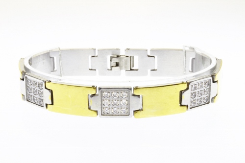 STAINLESS STEEL LINK MEN BRACELET IN IPG 2 TONE 3 CENTER LINKS WITH CNC SETTING