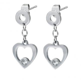 STAINLESS STEEL EARRING WITH HEARTS CHARM WITH CZ ALL IN S/S COLOR