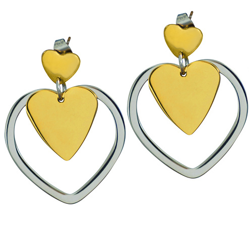 STAINLESS STEEL EARRING IN 3 HEART SHAPE IN IPG TWO TONES