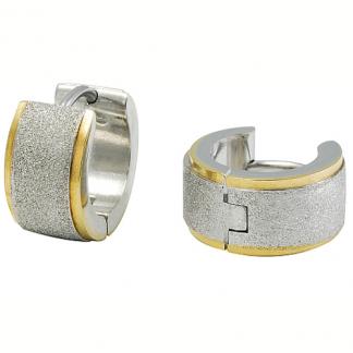 STAINLESS STEEL HUGGIE EARRING IN SANDBLAST IN IPG TWO TONES
