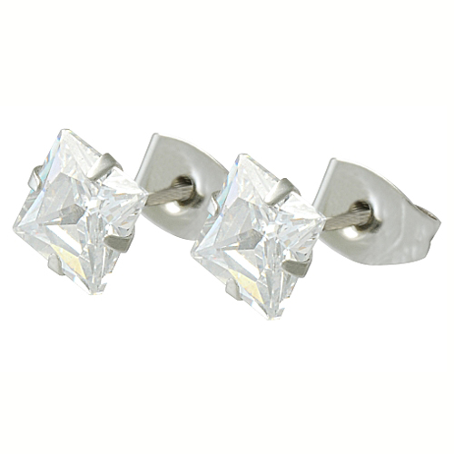 STAINLESS STEEL EARRING IN SQUARE SHAPE 6MM CZ ALL IN S/S COLOR