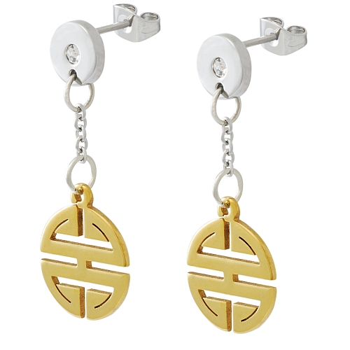 STAINLESS STEEL EARRING IN CIRCLE SHAPE WITH CZ IN IPG TWO TONES