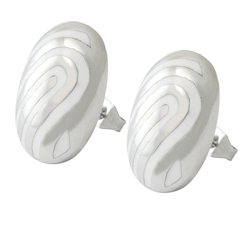 STAINLESS STEEL EARRING IN OVAL SHAPE WITH WHITE ENAMEL IN S/S COLOR