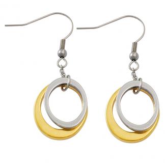 STAINLESS STEEL EARRING WITH 2 ROUND SHAPE IN IPG TWO TONE COLOR