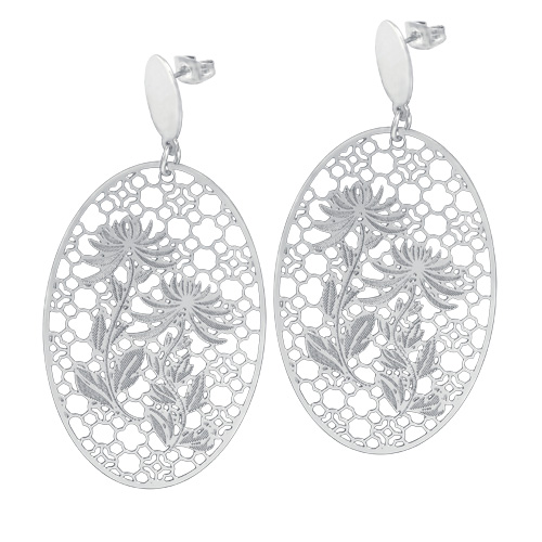 STAINLESS STEEL EARRING IN OVAL & FLOWER SHAPE ALL IN S/S COLOR