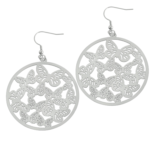 STAINLESS STEEL EARRINGIN ROUND SHAPE WITH BUTTERFLIES PATTERN ALL IN S/S COLOR