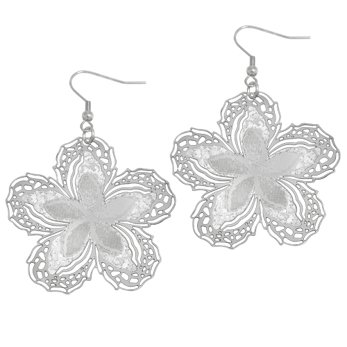 STAINLESS STEEL EARRING IN FLOWER SHAPE IN THREE TEXTURESALL IN S/S COLOR