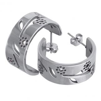 STAINLESS STEEL HUGGIE EARRING WITH FLOWER CUTOUT ALL IN S/S COLOR
