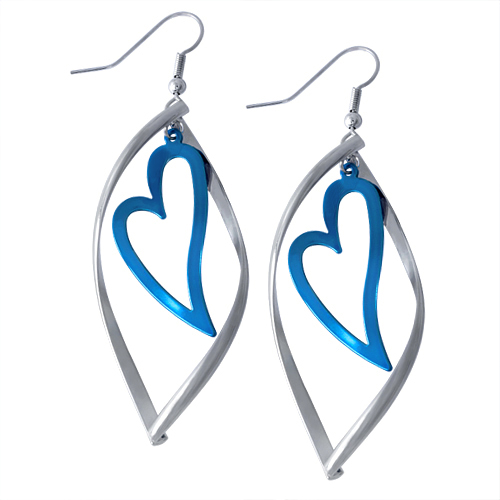 STAINLESS STEEL EARRING IN LEAVES & HEART SHAPE IN IP BLUE TWO TONE