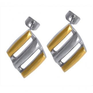 STAINLESS STEEL STUD EARRING IN RHOMBUS SHAPE IN IPG TWO TONE [CASTED ITEM]