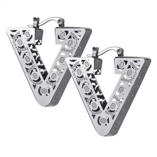 STAINLESS STEEL 3D EARRINGIN HOOP STYLE IN TRIANGLE SHAPE WITH CUT OUT ALL IN STEEL COLOR