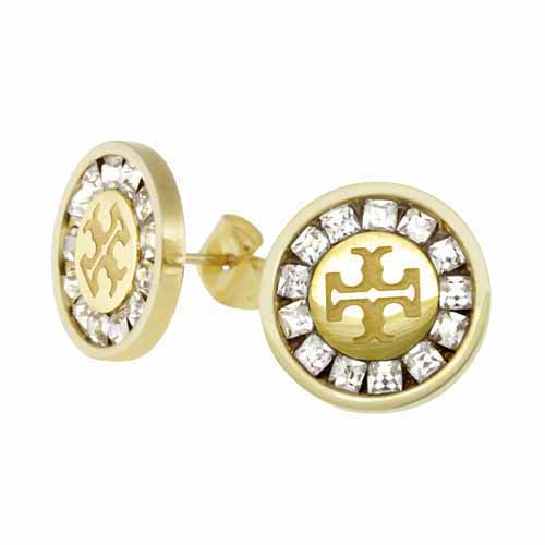 STAINLESS STEEL EARRINGS IN IPG COLOR IN CIRCLE SHAPE WITH CROSS WITH CZ