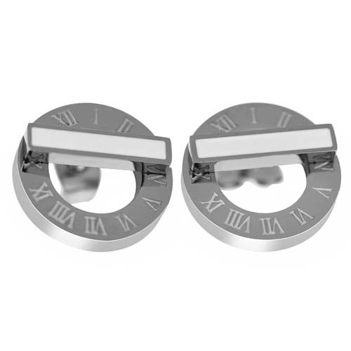 STAINLESS STEEL EARRINGS IN CIRCLE SHAPE WITH ROMAN NUMBERS WITH WHITE ENAMEL IN S/S COLOR (Set with SN574)
