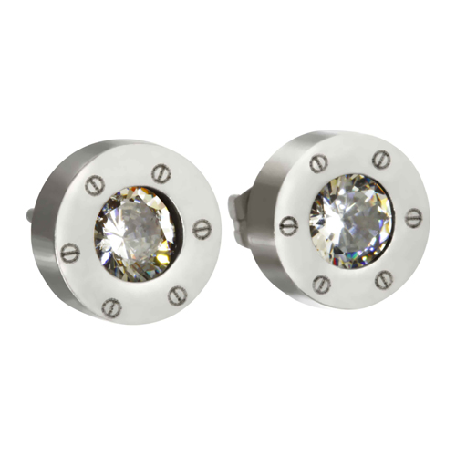 STAINLESS STEEL EARRINGS IN CIRCLE SHAPE WITH ROMAN NUMBERS AND CRYSTAL IN S/S COLOR.