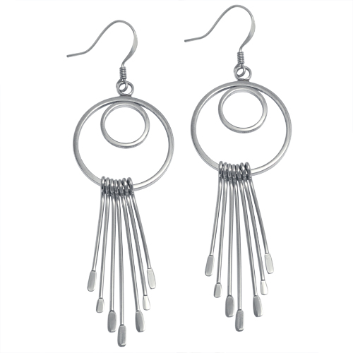 STAINLESS STEEL EARRING WITH 2 CIRCLE WITH 7 CHAIN ALL IN S/S COLOR