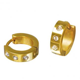 STAINLESS STEEL HUGGIE EARRING IN IPG COLOR WITH 3 CZ