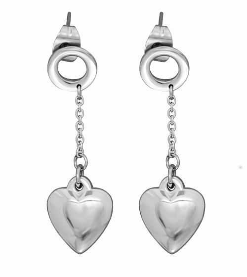 STAINLESS STEEL EARRING WITH HEART CHARMS ALL IN S/S