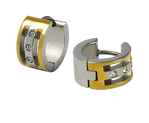 STAINLESS STEEL EARRING WITH 3 CZ IN IPG 2 TONES