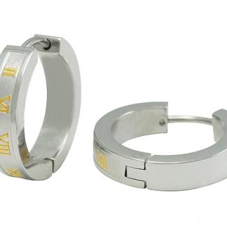 STAINLESS STEEL EARRING WITH ROMAN NUMBERS IN IPG 2 TONES