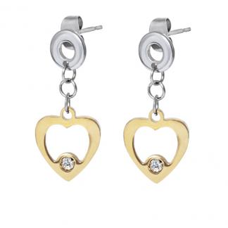 STAINLESS STEEL EARRING IN HEART WITH CZ IN IPG TWO TONE
