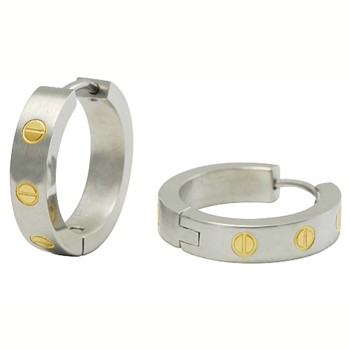 STAINLESS STEEL EARRING WITH SCREW PATTERN IN IPG 2 TONES