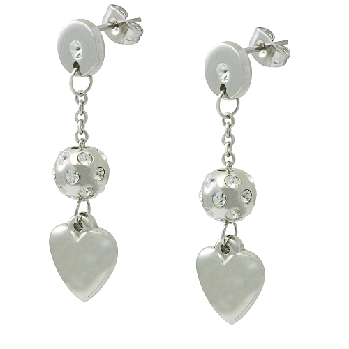 STAINLESS STEEL EARRING IN HEART SHAPE WITH CZ (with ball in centre with cz) ALL IN S/S COLOR