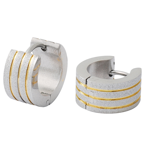 STAINLESS STEEL HUGGIE EARRING IN ROUND SHAPE WITH SANDBLAST IN IPG TWO TONES