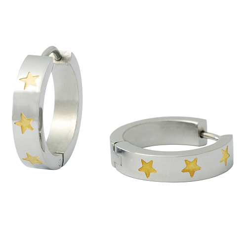 STAINLESS STEEL EARRING IN ROUND SHAPE WITH STAR IN IPG 2 TONES