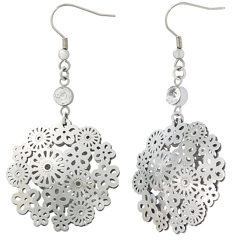 STAINLESS STEEL EARRING IN FLOWER SHAPE WITH CZ (front & back side in Soldered) ALL IN S/S COLOR
