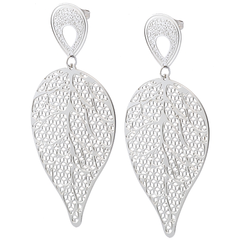 STAINLESS STEEL EARRING IN LEAF SHAPE ALL IN S/S COLOR
