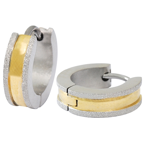STAINLESS STEEL HUGGIE EARRING IN ROUND SHAPE WITH SANDBLASTIN IPG TWO TONES