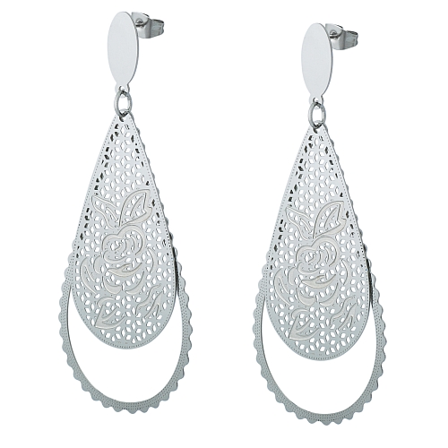 STAINLESS STEEL EARRING IN DROP SHAPE WITH ROSE PATTERN WITH HOLESALL IN S/S COLOR