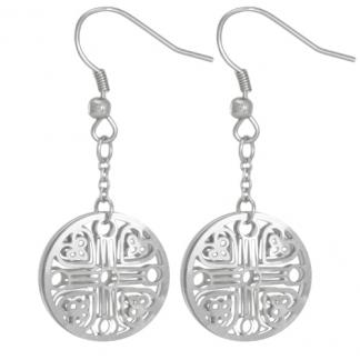 STAINLESS STEEL EARRING IN ROUND WITH CROSS & HEART SHAPE (with 2 layers) ALL IN S/S COLOR