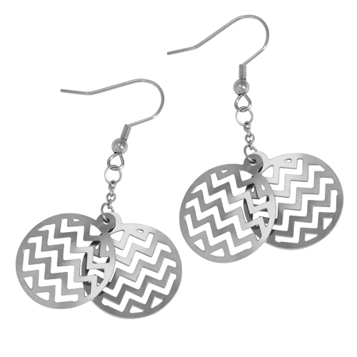 STAINLESS STEEL EARRING IN ROUND SHAPE WITH CUTOUT PATTERN WITH ZIGZAG STRIPPED PATTERN ( 2 layers) ALL INS/SCOLOR
