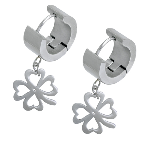 STAINLESS STEEL HUGGIE EARRING WITH CLOVER SHAPE WITH CUTOUT IN S/S COLOR