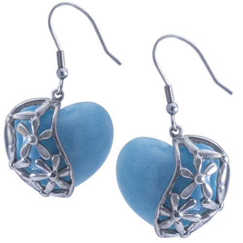 STAINLESS STEEL EARRING IN HEART SHAPE IN BLUE COLORIN S/S COLOR