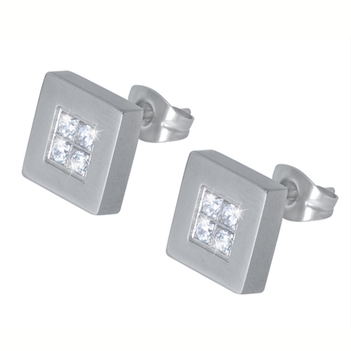 STAINLESS STEEL EARRINGSIN SQUARE SHAPE WITH CZALL IN S/S COLOR