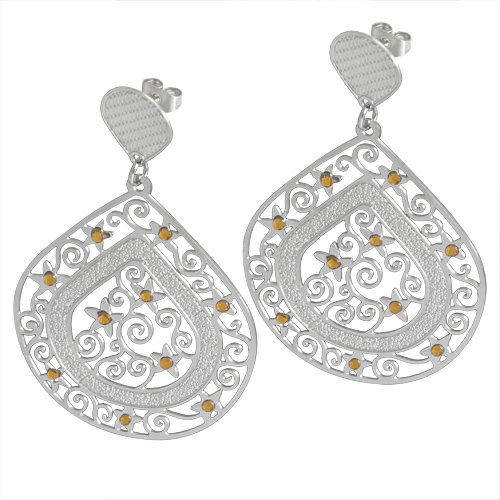 STAINLESS STEEL EARRING IN DROP SHAPE WITH CZ IN IPG TWO TONES