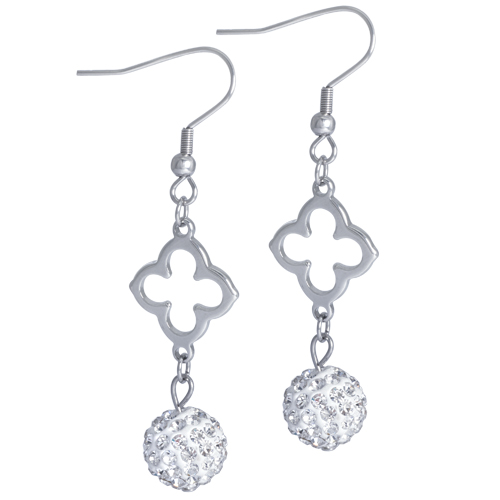 STAINLESS STEEL EARRINGWITH CZ BALL AND STAINLESS STEEL LEAF WITH FISH HOOK